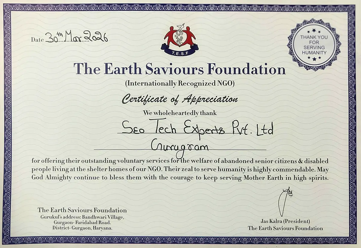 CSR Initiative in Gurgaon: SEO Tech Experts Supports Earth Saviour Foundation